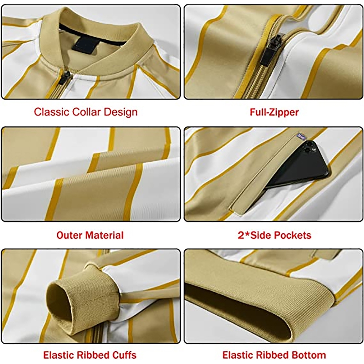 - Track suits for men set active jackets with 2 slant pockets, full-zip closure, stand collar, long sleeve; active pants with pockets, delicate waist elastic design with drawstring, easy to put on..