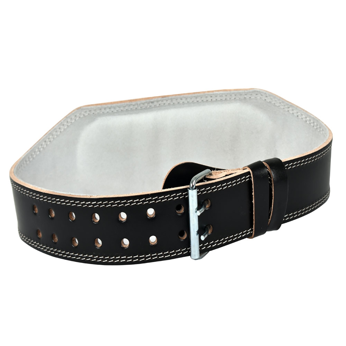 - Padded leather 4 inch weightlifting belt with contoured design for added comfort.